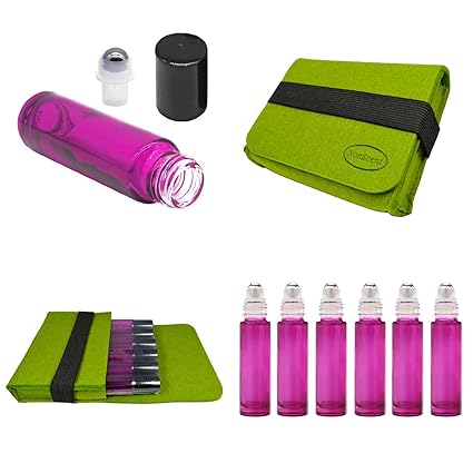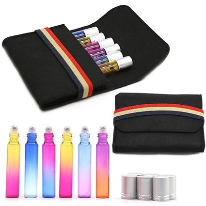 Sky Welle Refillable Empty Roll On Bottle Kit Include 6 Piece 10ml Roller Essential Oil Bottles 1 Carry Felt Case For Diy Essential Oil Perfume