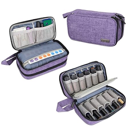 Luxja Essential Oil Bag Double Layer Essential Oil Carrying Case Holds 12 Bottles 5ml 15ml Include Roller Bottle Portable Essential Oil Travel