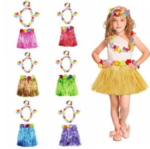 2019 Set Flower Wristband Costume Kids Hawaiian Grass Skirt Luau Garland Headband Hula Fancy Dress Party And Festival Diy Decor 30cm From Dreamkids